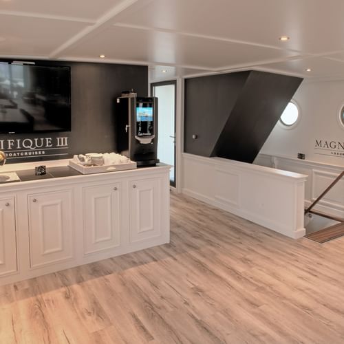 - Rental bikes on board: Smooth-running 7-speed unisex touring bikes from Velo de Ville with hand and coaster brakes or freewheel and pannier bag. 7-speed electric bikes from Velo de Ville with freewheel and pannier bag (limited number - early booking required). Please state your height when booking. Bringing your own bike: Due to the limited space available on the sun deck, bringing your own bike is only possible on request and only to a limited extent.